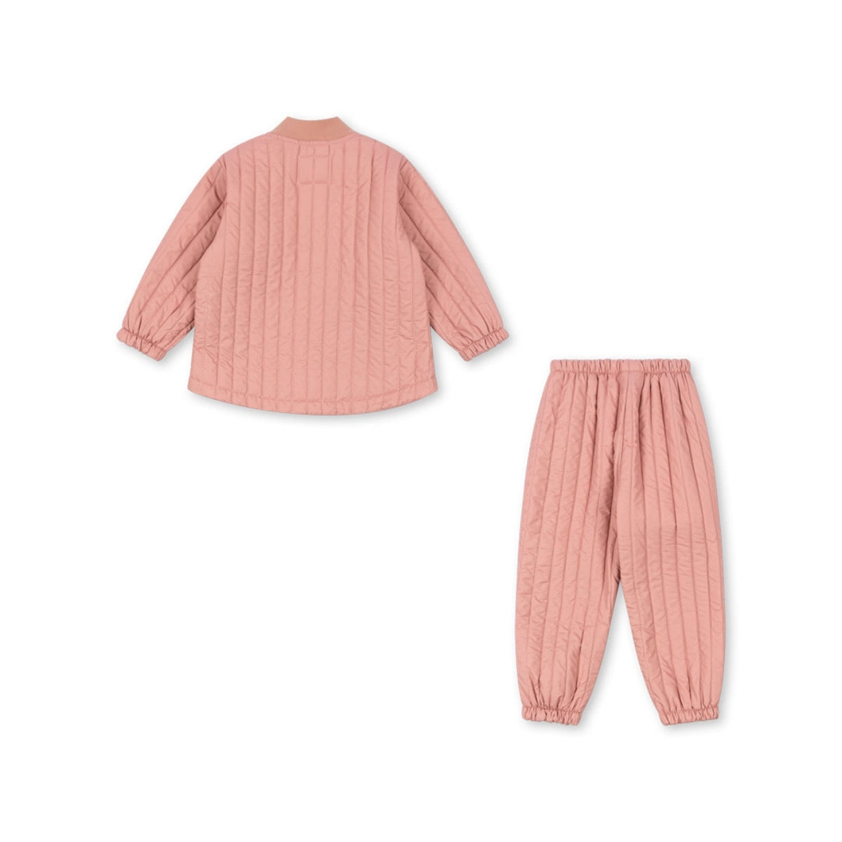 Set termo pantalona i jakne uparenog dizajna, izrađen od laganog i toplog postavljenog materijala. Površina je obrađena ekološkim, vodoodbojnim premazom za zaštitu u svim vremenskim uslovima. Dizajniran sa jednostavnom, ravnom siluetom koja se lako kombinuje – bilo da se nosi samostalno ili kao sloj ispod deblje odeće u posebno hladnim danima.