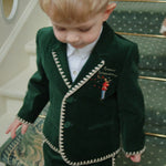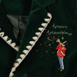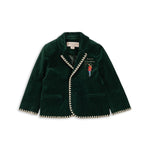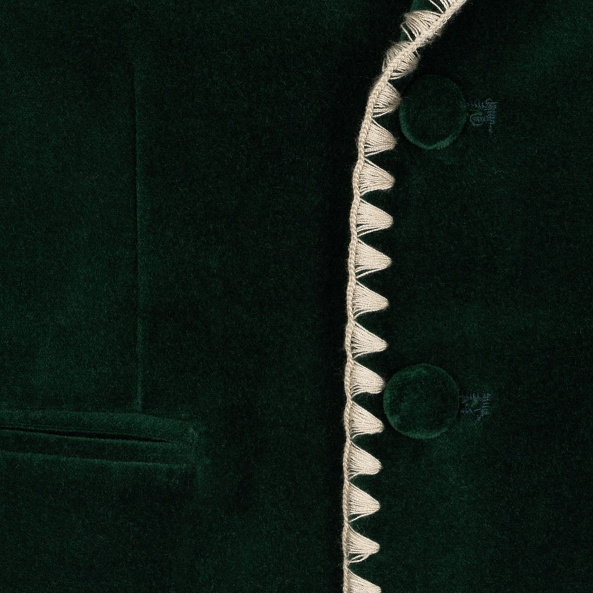 Sako od mekog somota sa bezvremenskim detaljima. Ima klasičan rever, kopčanje sa dugmićima, ušivene džepove i dekorativne bele kontrastne šavove.