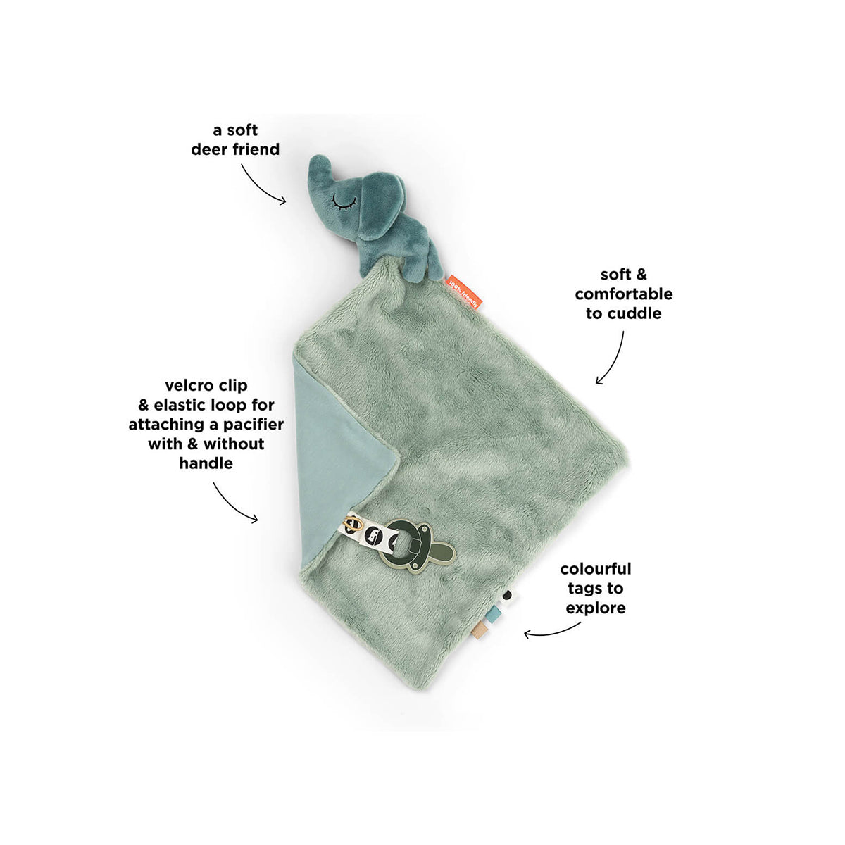 Praktična kopča na čičak drži dude nadohvat ruke, tako da Raffi može biti blizu od kreveca do kolica i svuda između.