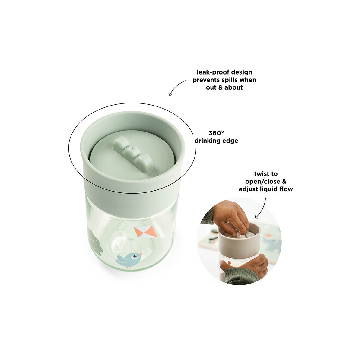 Prelazak sa čaše sa piskom na običnu čašu može delovati kao veliki korak. Naša Learning Cup 360° dizajnirana je da taj korak učini radosnim i lakim za male istraživače. Zahvaljujući pametnoj ivici za piće od 360°, dete može da pije sa bilo koje strane, baš kao iz prave čaše, gradeći samostalnost i samopouzdanje – gutljaj po gutljaj.