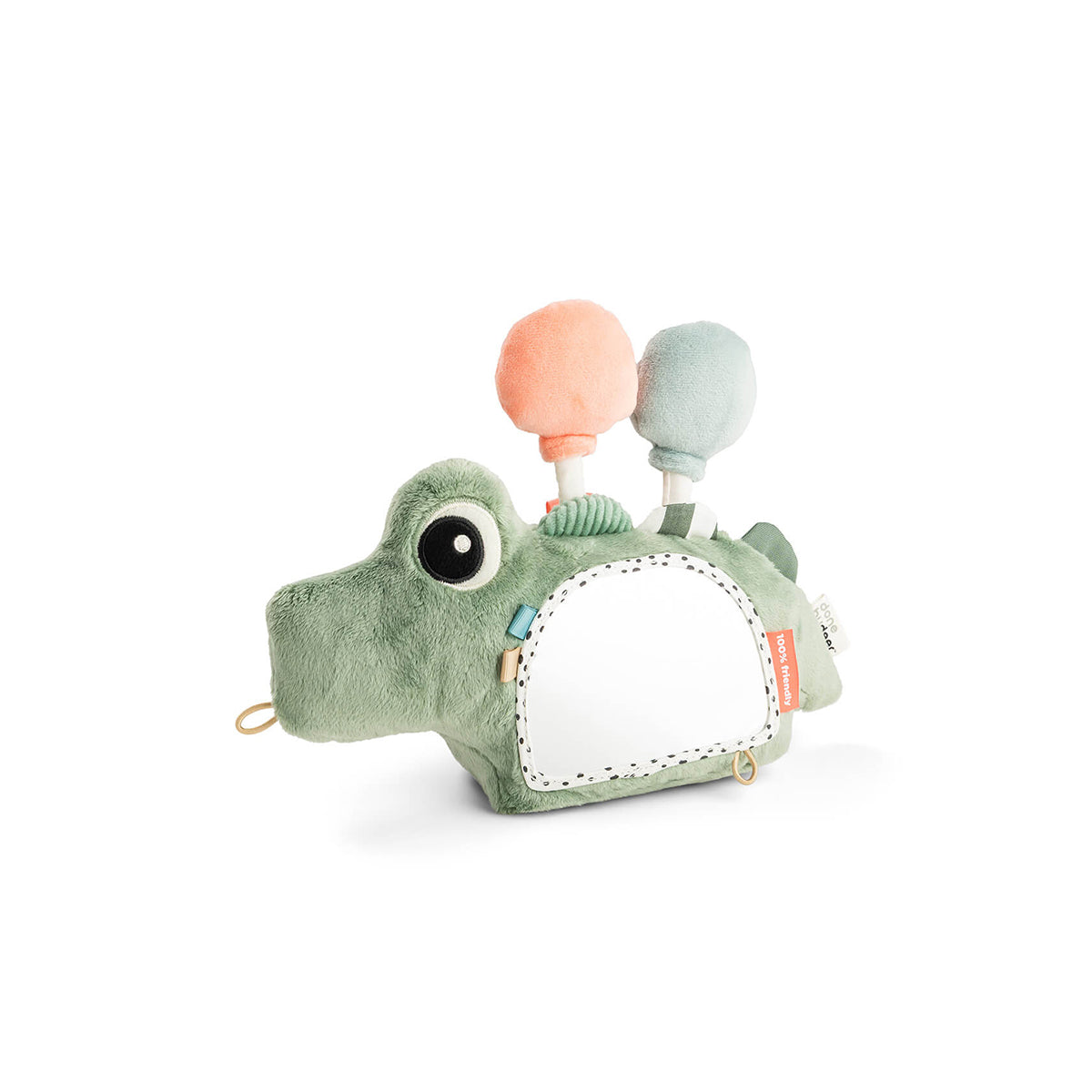 Ogledalo podstiče radoznalost i ranu samospoznaju, dok interaktivni detalji poput nežnih zvukova, šuštavih tekstura i šarenih etiketa podržavaju senzorno otkrivanje. Dok male ručice hvataju i istražuju, koordinacija i svest o telu prirodno počinju da se razvijaju.