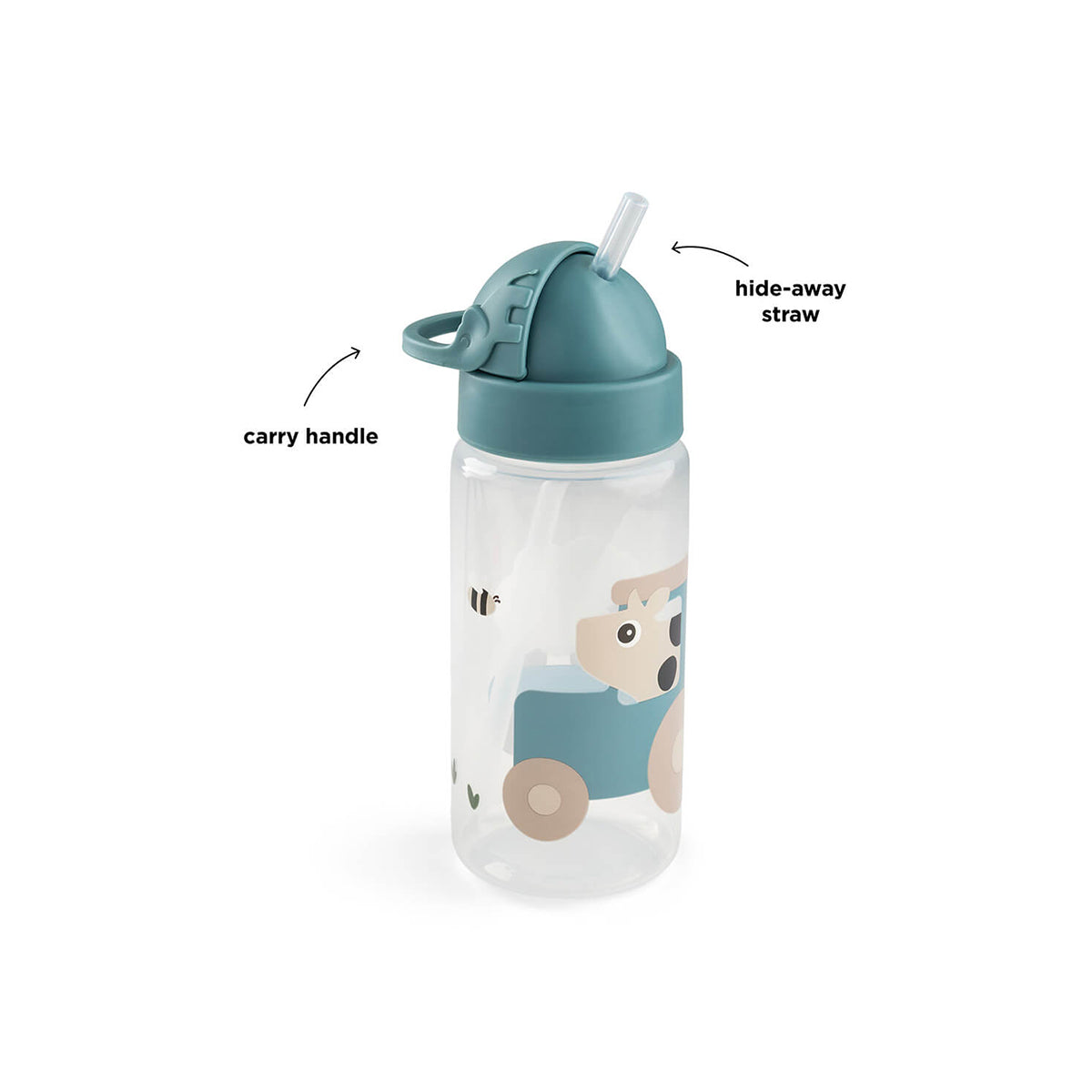 Bočica sa slamkom savršeno staje u dečije rančeve i neizostavan je detalj za nezaboravne avanture. Slamka dolazi uz bočicu.