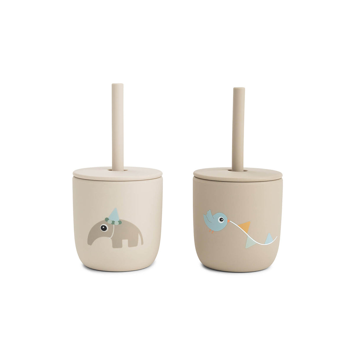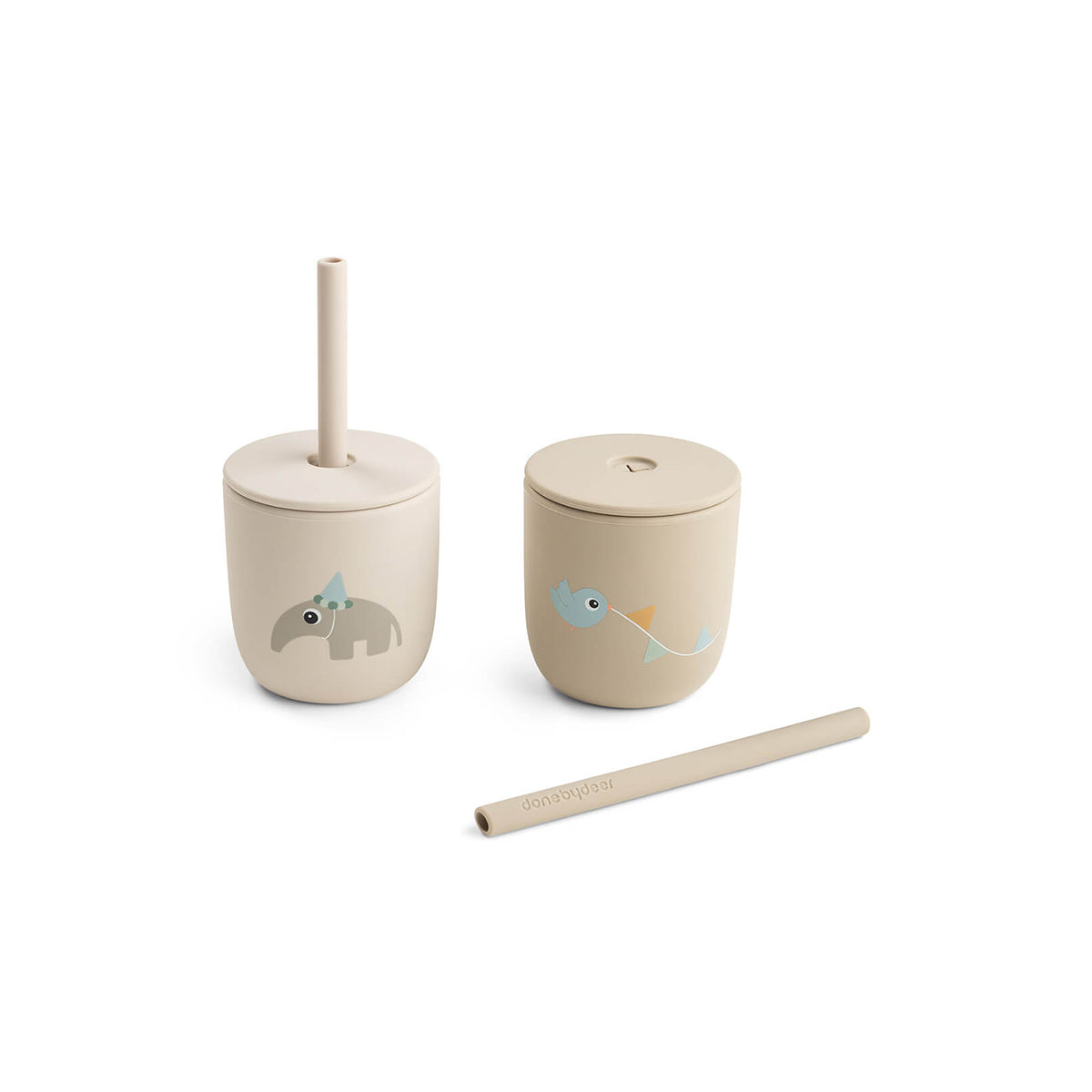Done By Deer celebration silikonska čaša sa slamkom 2 kom, bež