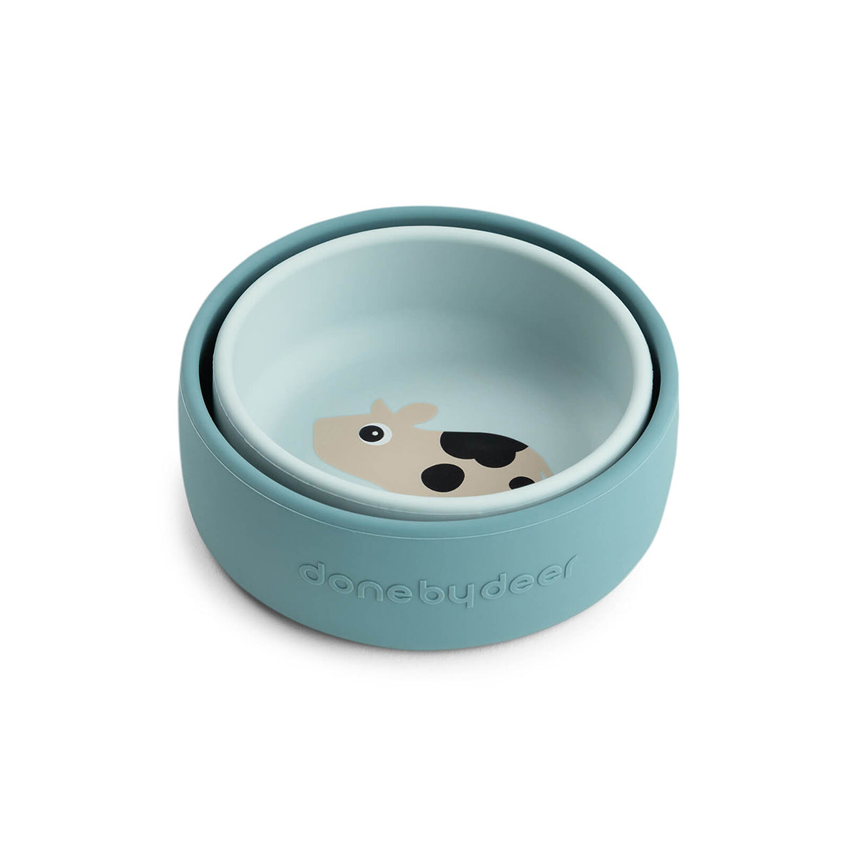 Done By Deer tiny farm silikonska stick&stay činija sa pregradom, plavo