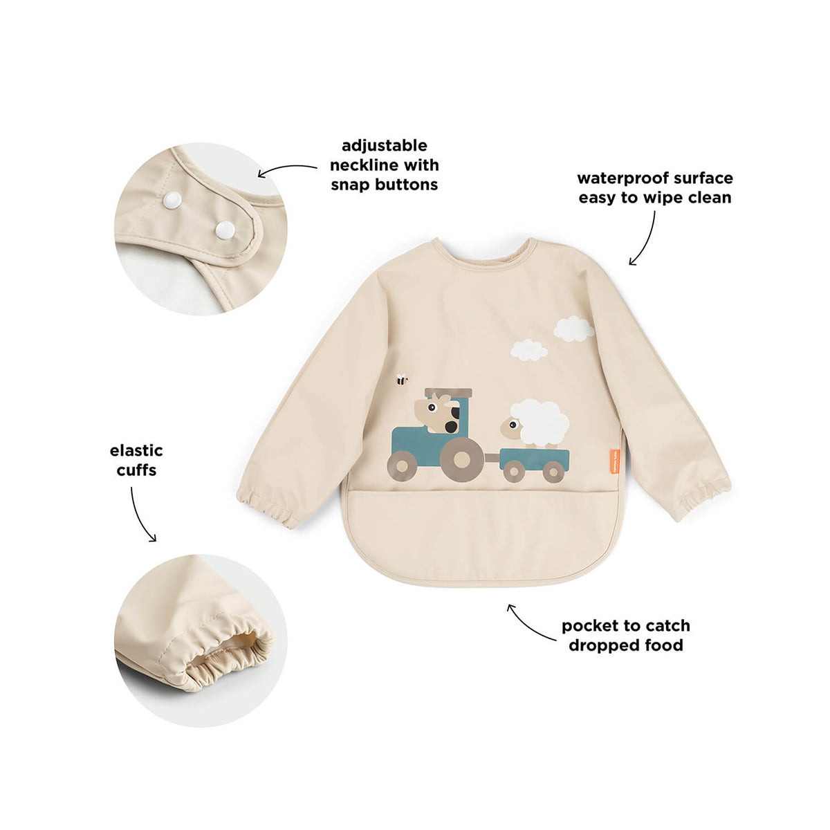 Portikla osigurava čistoću sa svojom vodootpornom površinom, štiteći odeću od prosipanja i nereda. Dodatni zaštitni rukavi pružaju dodatnu pokrivenost, čuvajući odeću od prljanja.