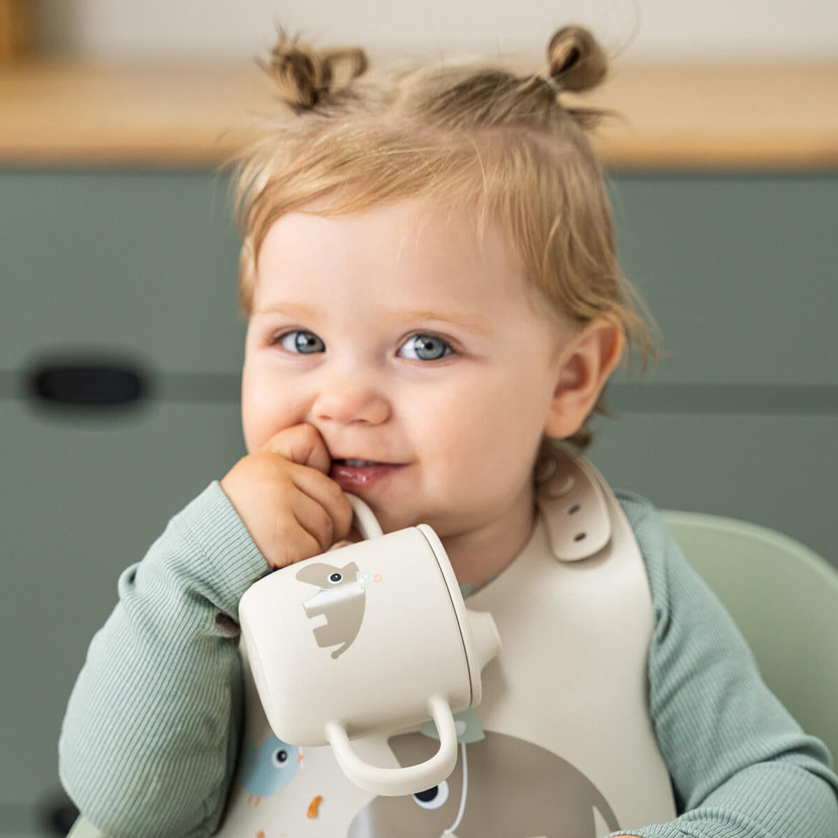 Šolja je izrađena od 100% prehrambenog silikona i ne sadrži BPA, tako da je bezbedna za svakodnevnu upotrebu. Materijal otporan na toplotu lako podnosi porodičnu svakodnevicu – bezbedan je za mašinu za sudove i mikrotalasnu.