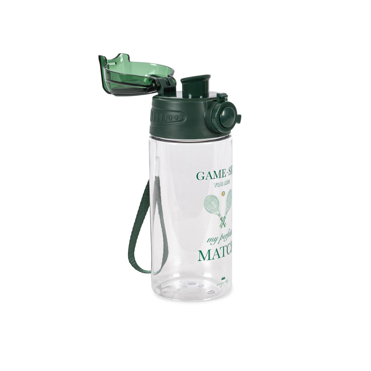 Flašica za vodu sa jednostavnim poklopcem na klik. Praktična za nošenje u pokretu – dovoljan je lagani pritisak da se flašica otvori i da se pije, a isti pokret je zatvara, čime ostaje čista i ne curi. Dizajnirana od laganog materijala i opremljena trakom za nošenje. Pogodna za decu od 18+ meseci.