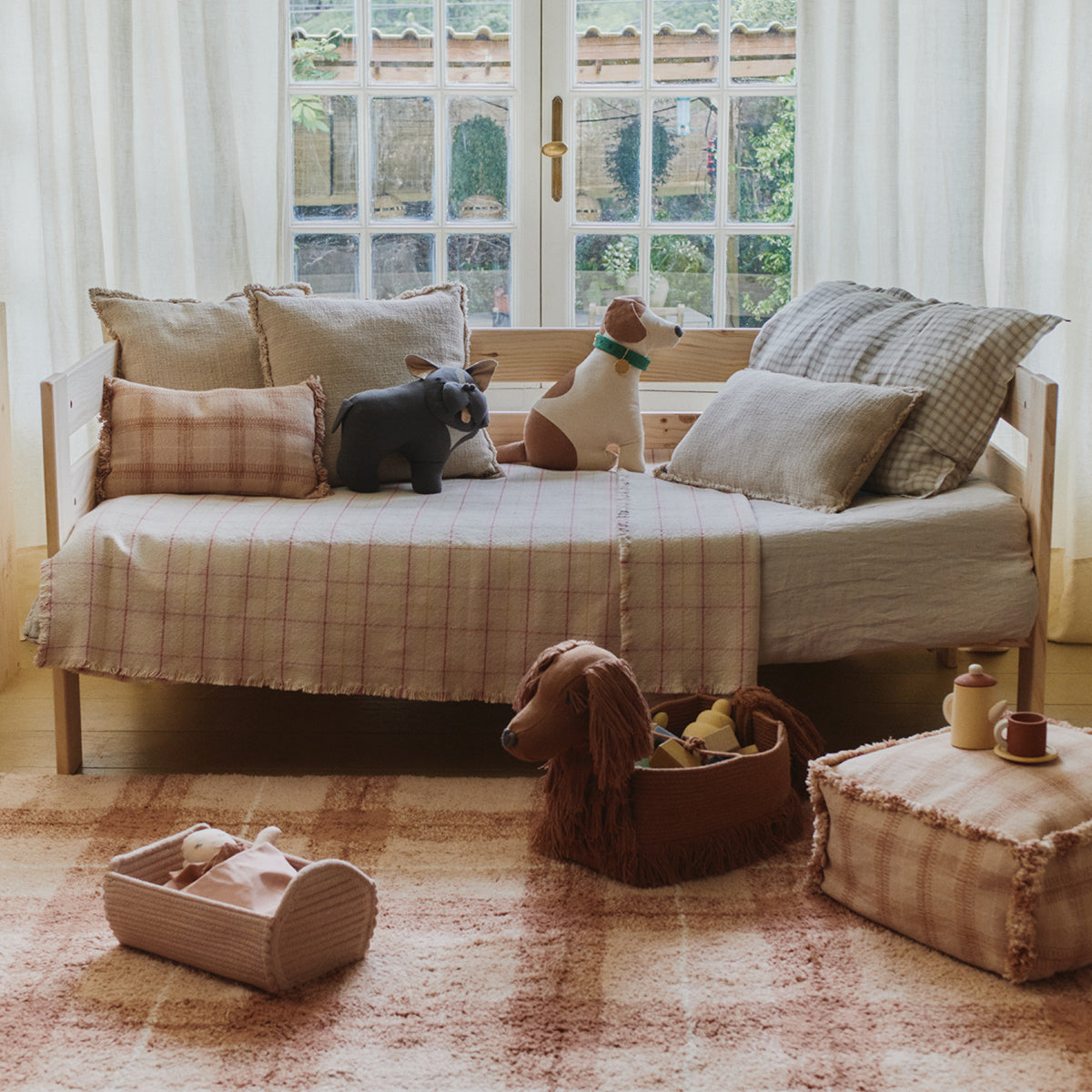 Održavanje: Ne perite u mašini za pranje veša. Za uklanjanje mrlja preporučujemo upotrebu mlake vode i nežnog sapuna. Izbegavajte kontinuirano izlaganje suncu kako korpa ne bi posvetlela.