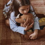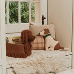Otkrijte detalje: slojevite rese na ušima i repu i vezene trepavice. Konopac sa strane pomaže u održavanju strukture, a dolazi sa malom igračkom kosti pričvršćenom za etiketu.