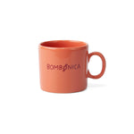Šolja je narandžaste boje a natpis "BOMBONICA" tamno roze boje.