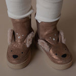 Zakoračite u šumske priče! Šumsko čudo! Sa mekom metalik kožom i razigranim detaljima jelena, ove čizme na obuću donose zabavu i funkcionalnost svakom zimskom izletu.