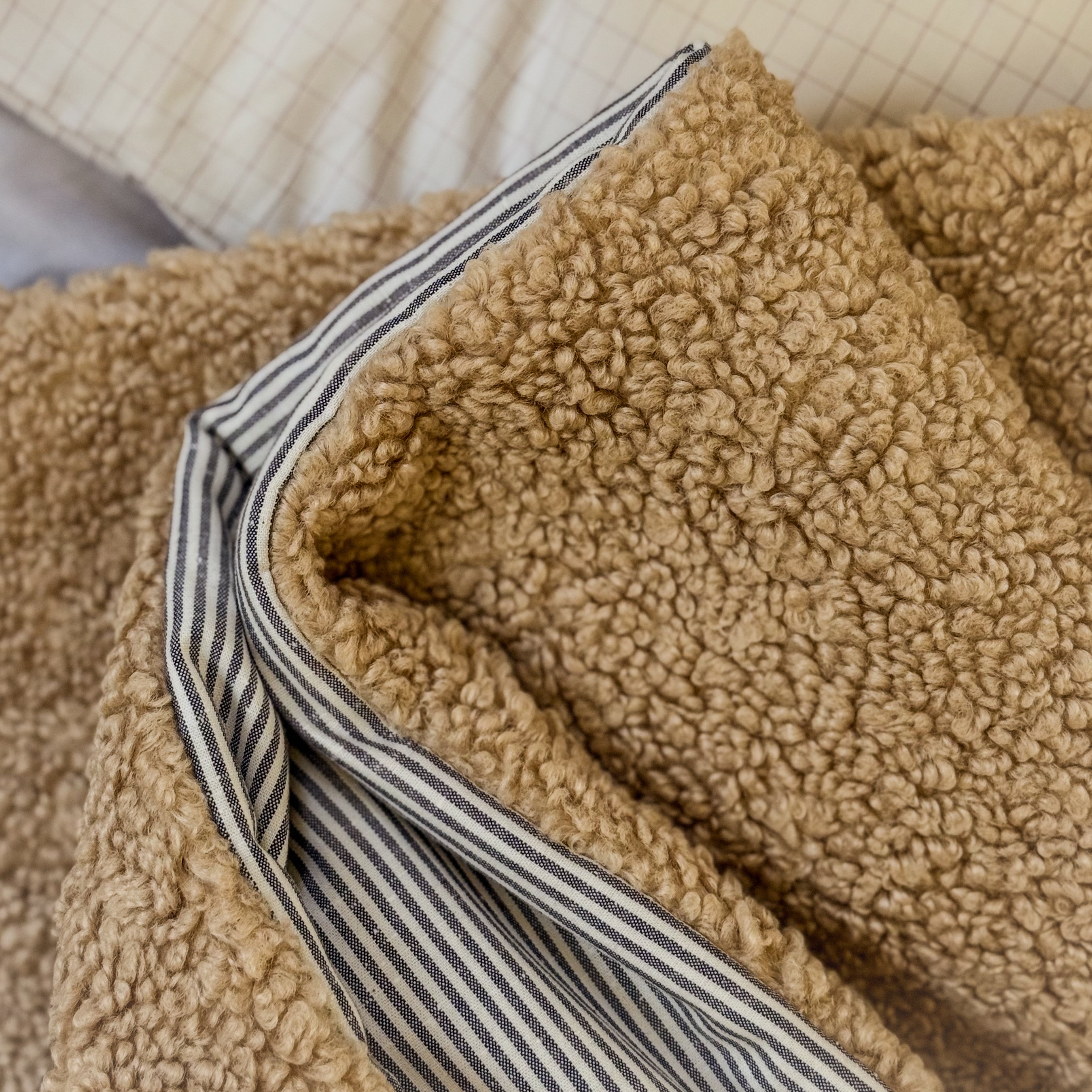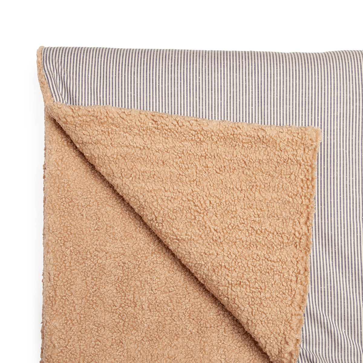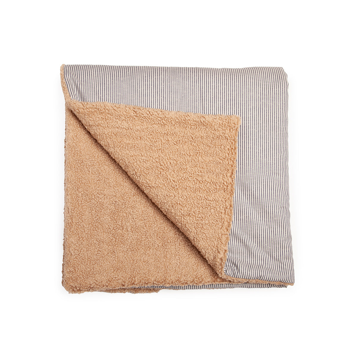 Pokrivač Mini Chalet Teddy Blue spaja dve strane zime - mekoću, toplinu i svežinu planinskog jutra. Jedna strana izrađena je od mekanog teddy materijala koji greje poput zagrljaja, dok je druga od pamuka u bež i plavim prugama koje unose spokoj i prirodan šarm. Savršen za hladne dane, ušuškane večeri i dečje sobe koje odišu toplinom i stilom.