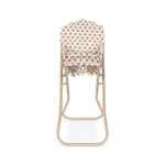 A folding feeding chair for small dolls that can be joined to the dining table. It has a detachable seat.