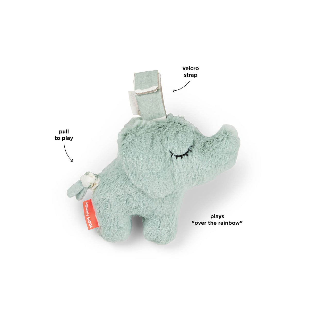 Soft powder tones and carefully designed details provide something calming to look at, while Elphee’s gentle shape adds comfort to quiet moments. Easy to hang with the practical Velcro strap, the musical toy can be attached to a cot, stroller, or other cozy spots where a calm environment is needed.