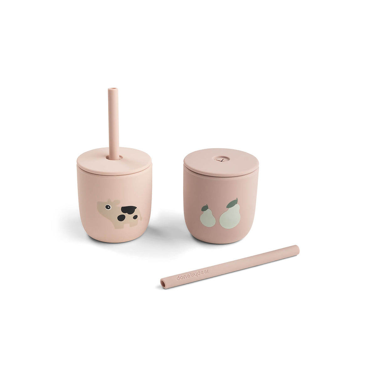 Done By Deer tiny farm silicone straw cup 2-pack, powder