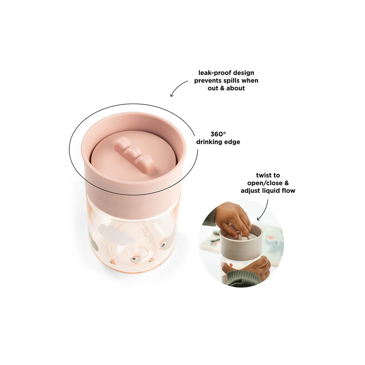 The twistable lid allows you to control the flow of liquid, so it doesn’t come out all at once. It easily adapts to your little one’s pace and helps prevent unexpected spills. When the lid is closed, the cup is leak-proof, making it ideal for everyday adventures – whether at home or on the go.