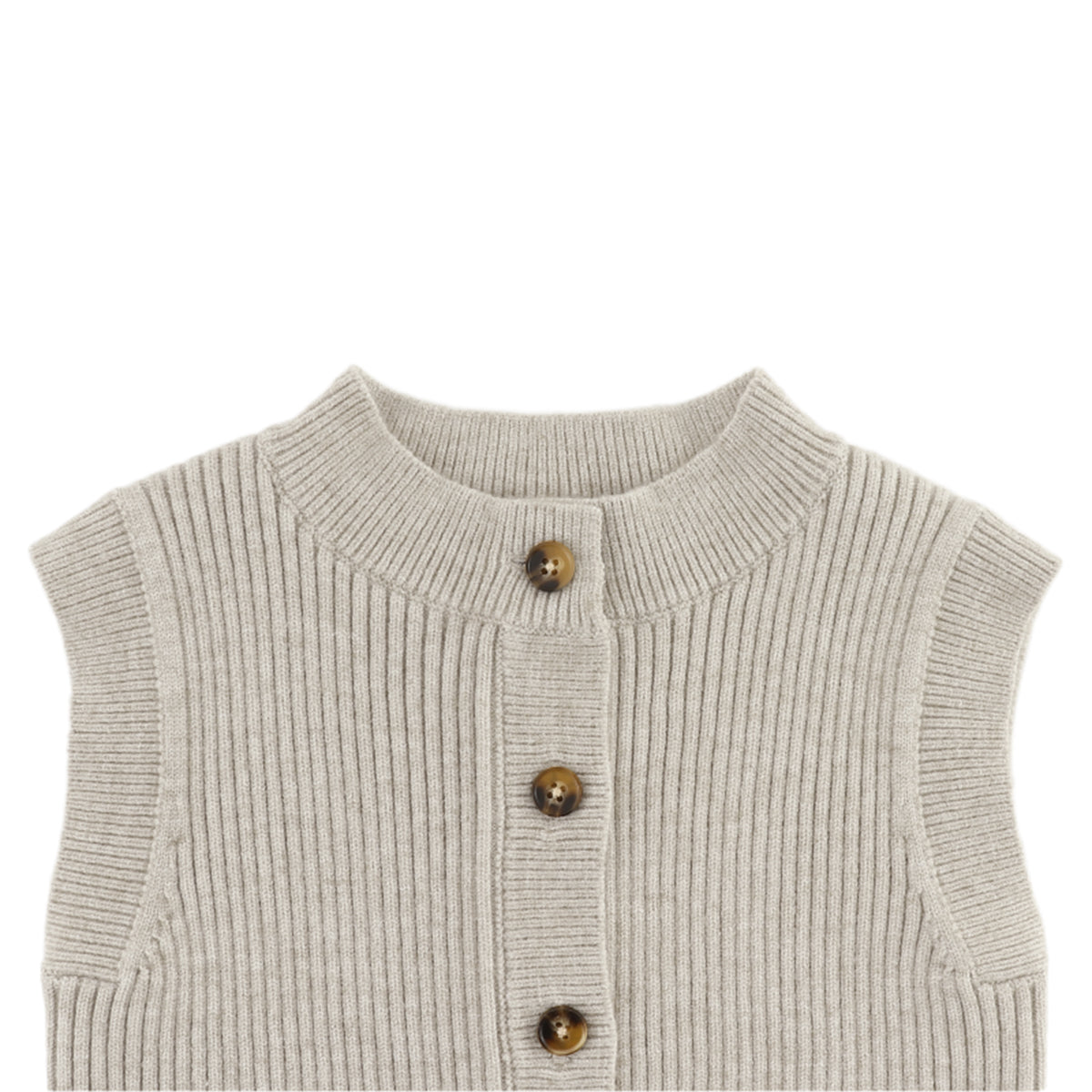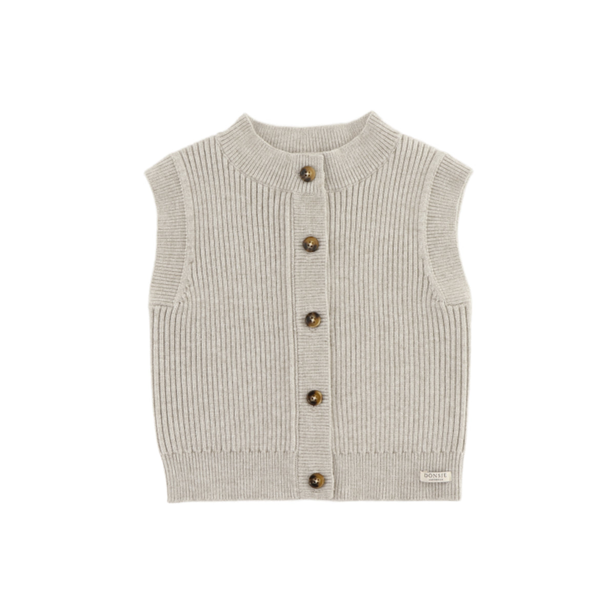 Chic and cosy layers! The Tjitske vest is a stylish layering piece for any season. With its decorative front fastening and easy slip-on design, this ribbed knit vest adds texture and charm to any outfit.