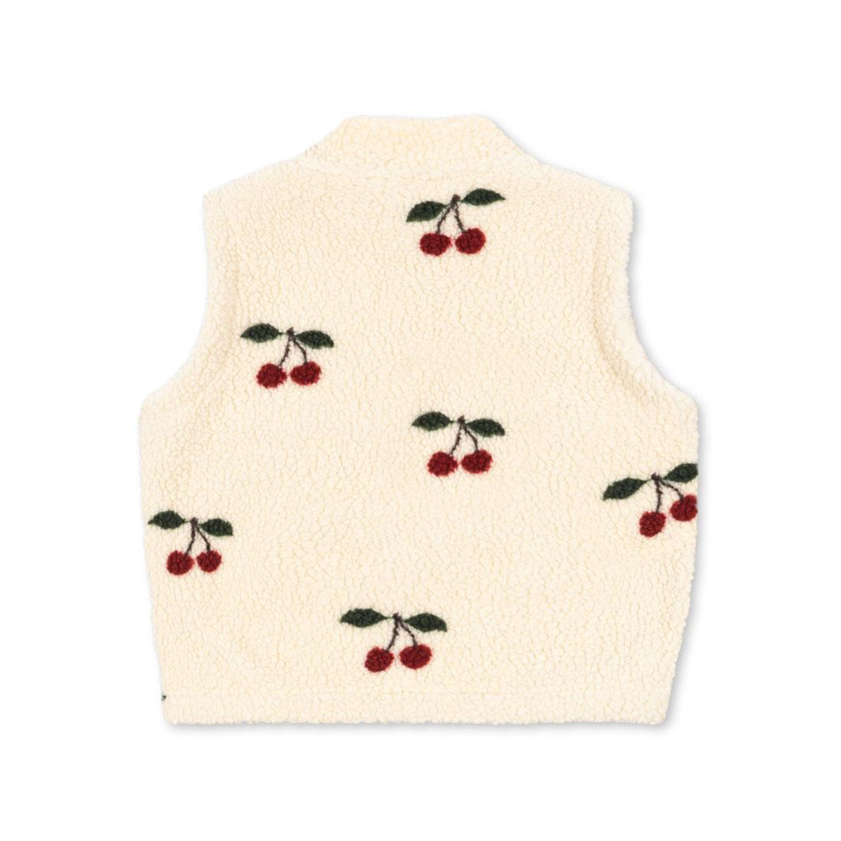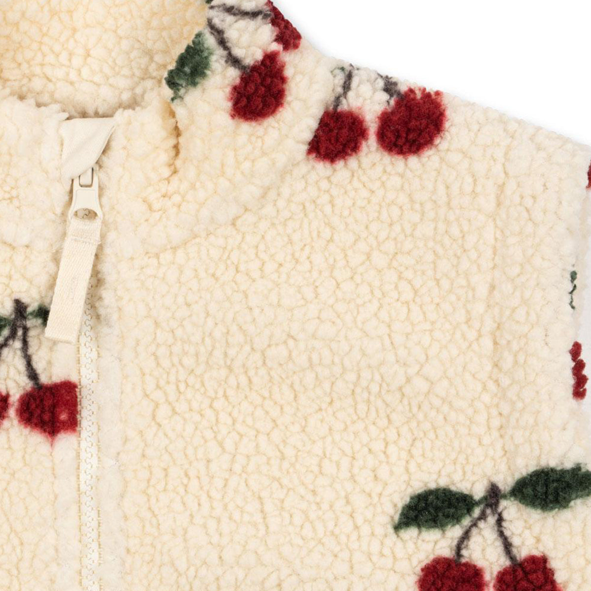 Warm vest made of teddy fleece with a soft inner fleece lining. Features a high collar and an elastic bottom hem for a comfortable fit. Equipped with a sturdy zipper that's easy for little hands to use.