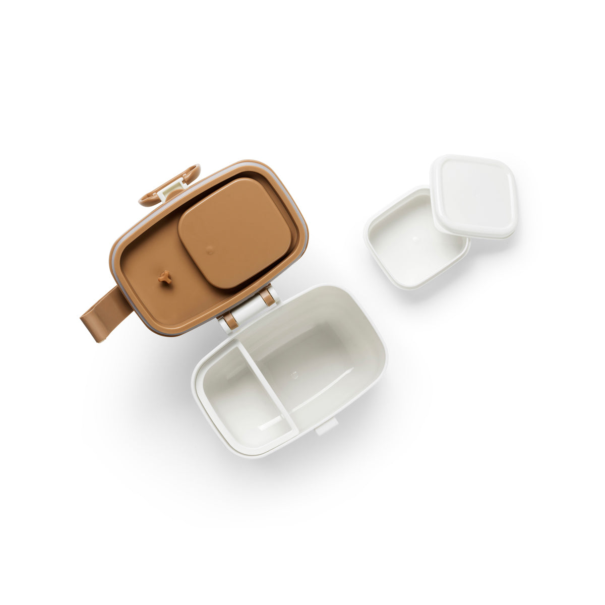 Inside the box are three different containers that allow you to keep dry and moist content separated and fresh.