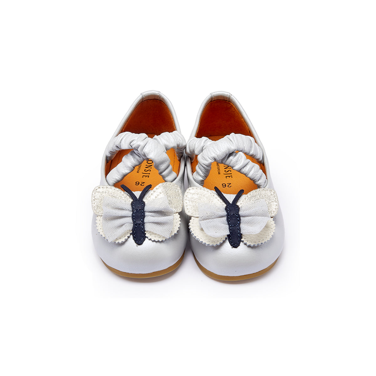 My fluttering heart! The Mileni Ballerinas are a graceful classic reimagined for little feet. Crafted from 100% premium leather with a delicate Donsje butterfly character featuring metallic leather and tulle details, these shoes come with an elasticated fastening for elevated comfort. Elegant, easy to wear, and made for fluttering through the day.