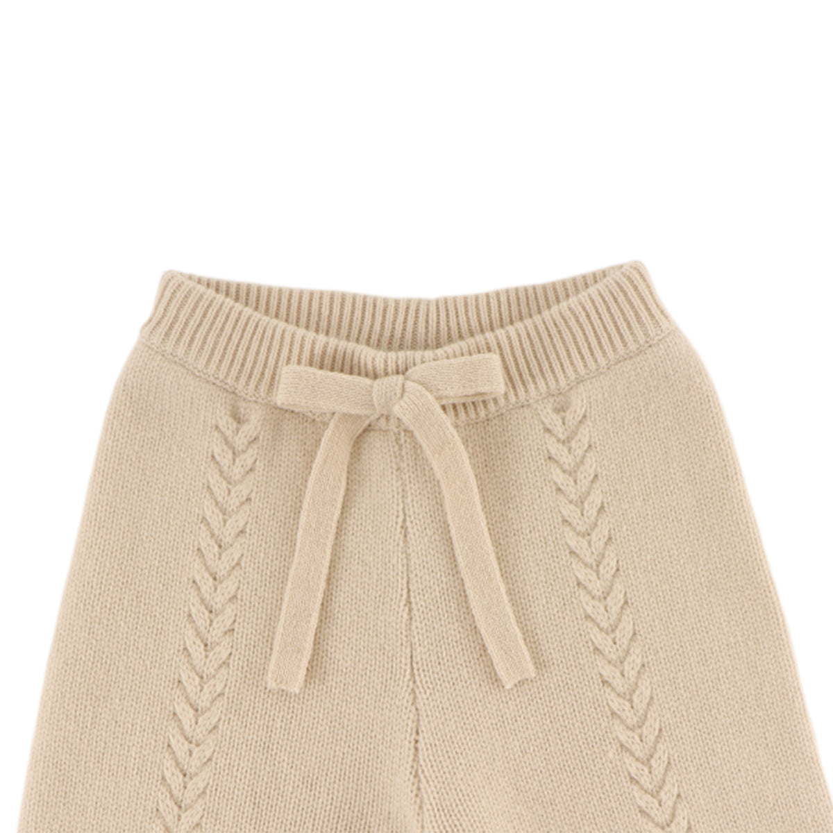 Knitted elegance! The Sulien merino wool trousers combine comfort with style. Featuring a stretchy waistband, front ties, and intricate knitted detailing along the legs, they're perfect for a cosy yet polished look.