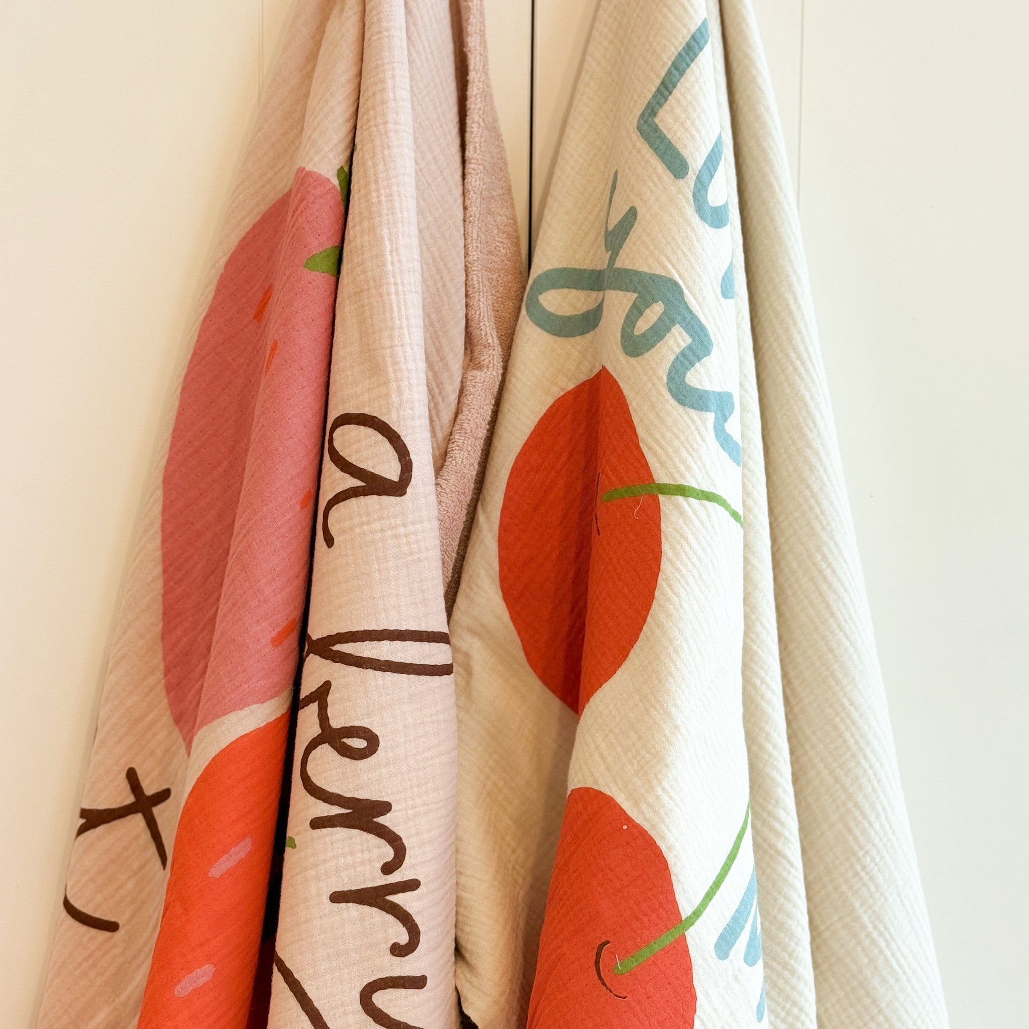 Naši peškiri izrađeni su od 100% muslin pamuka spolja i upijajućeg frotira iznutra. Dovoljno su lagani da ih deca ponesu sama, a opet meki i veliki da ih ušuškaju posle svakog kupanja.