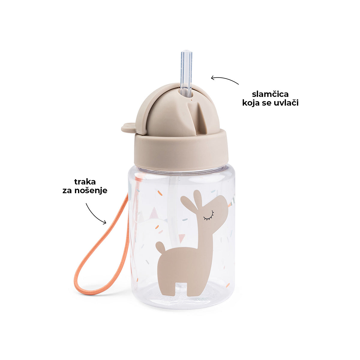 Bočica sa slamkom savršeno staje u dečije rančeve i neizostavan je detalj za nezaboravne avanture. Slamka dolazi uz bočicu.