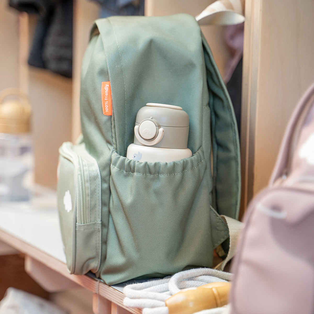 Sa mekanim, postavljenim leđima i podesivim kaiševima prilagođenim za dečija ramena, udoban je za nošenje tokom celog dana. Ima veliki glavni džep za sve njihove dragocenosti, prednji džep za grickalice koje treba brzo dohvatiti, kao i dva bočna džepa savršena za male flašice vode ili tajne sitnice. Zanimljiva nalepnica za ime dodaje razigran detalj, dok izdržljiva, vodootporna površina odoleva svakodnevnim prosipanjima i iznenađenjima.