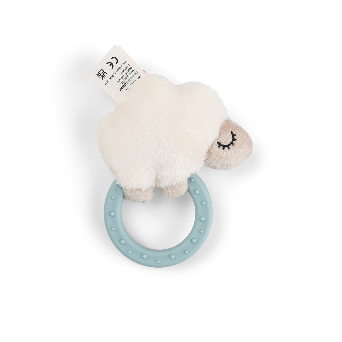 Sheepy zvečka dolazi u zabavnom obliku ovce sa dodatkom plave glodalice napravljene od 100% silikona. Različite teksture pomažu u smirivanju desni kada bebi počnu da rastu zubići.
