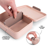 Pametan, uklonjiv pregradni deo omogućava da razdvojite hranu i grickalice onako kako vaše dete voli — sendvič sa jedne strane, voće ili hrskavo povrće sa druge. Zahvaljujući fleksibilnom položaju pregrade, kutija se lako prilagođava različitim obrocima i apetitima, iz dana u dan.