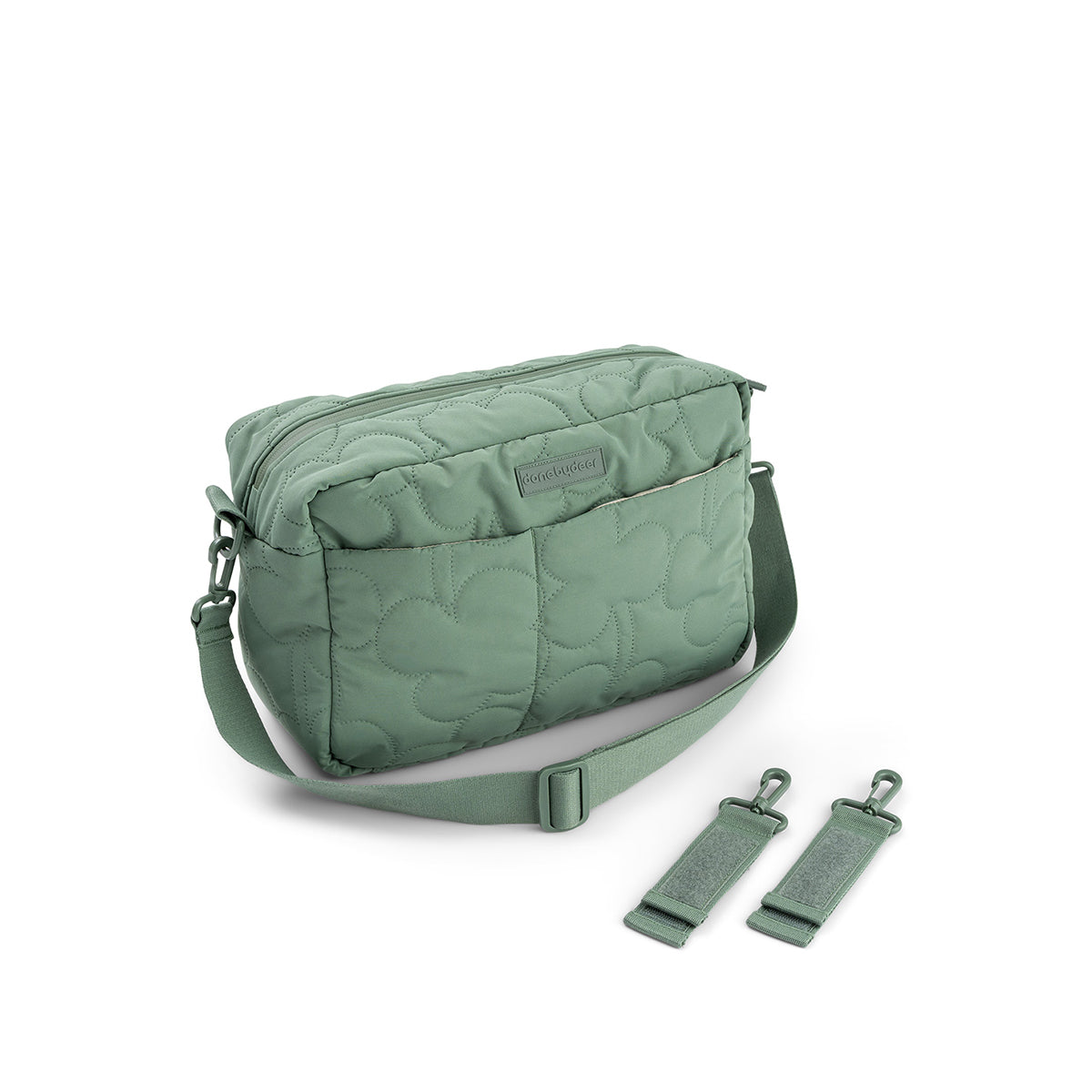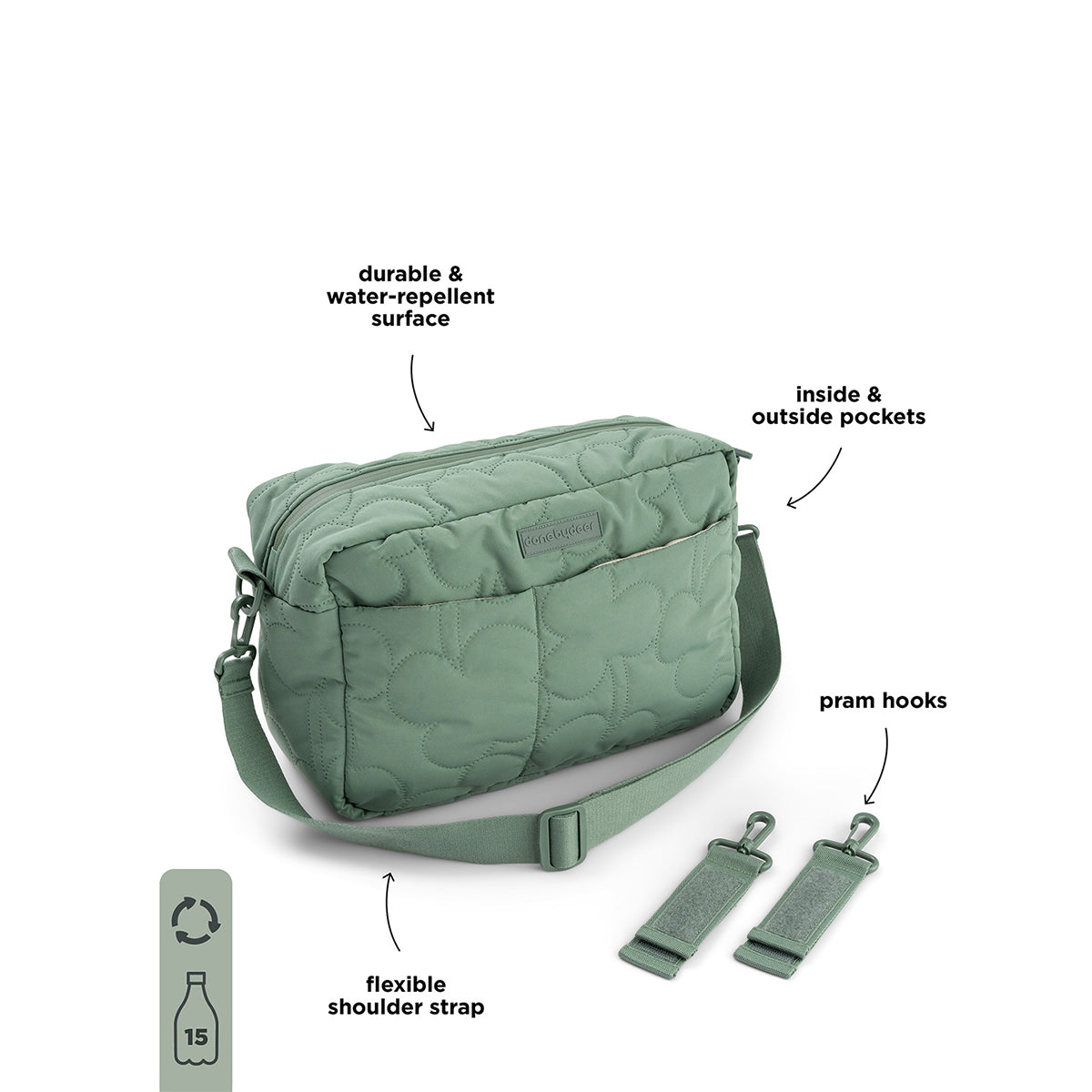 Napravljena od vodoodbojnog recikliranog poliestera, ova torba je spremna za sve vaše avanture na otvorenom, čuvajući opremu vaše bebe bezbednom i suvom. Lagana, elegantna i sa stilom- torba za kolica u hladnoj zelenoj boji sa razigranim printom deteline.