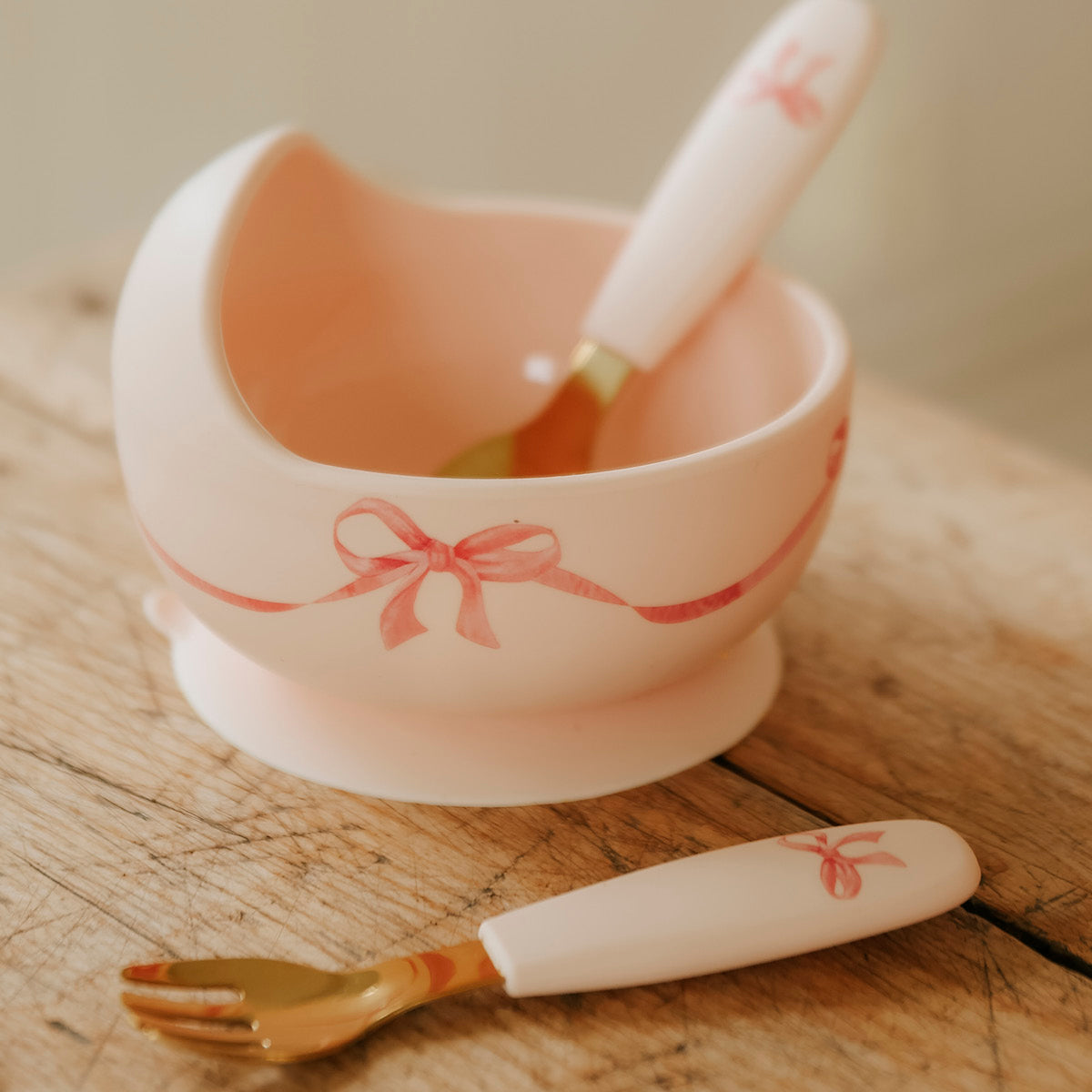 Elodie rosie bow silikonski set za jelo sa tanjirom