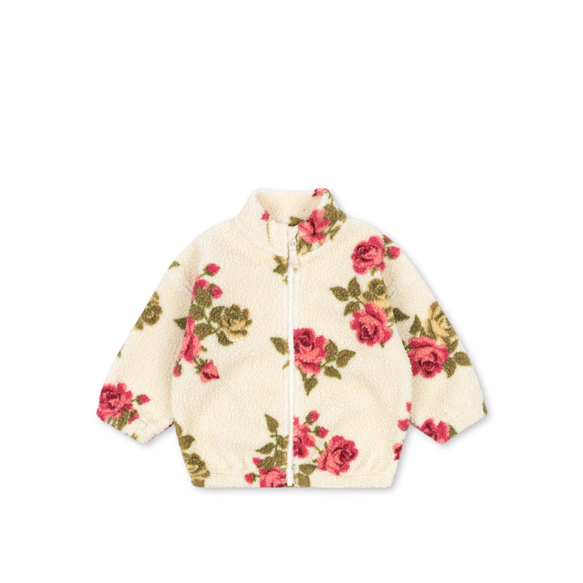 Topla jakna od plišanog flisa sa mekanom unutrašnjom postavom. Ima visoki okovratnik i elastične ranfle, kao i rajsferšlus duž cele prednje strane za lako oblačenje.
