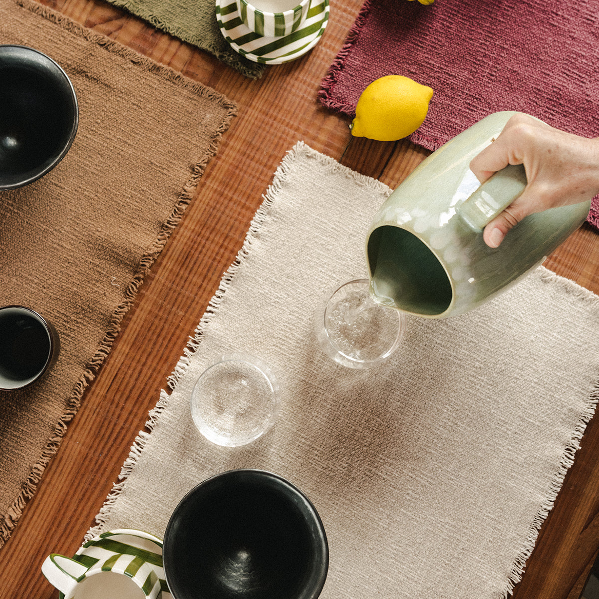 Unesite suptilnu eleganciju na svoju trpezu uz set od 2 ručno izrađena podmetača u prirodnoj i kaki nijansi. Tkani tradicionalnom tehnikom na razboju, ovi pamučni podmetači nastaju u rukama veštih majstora, uz veliku pažnju posvećenu svakom detalju.